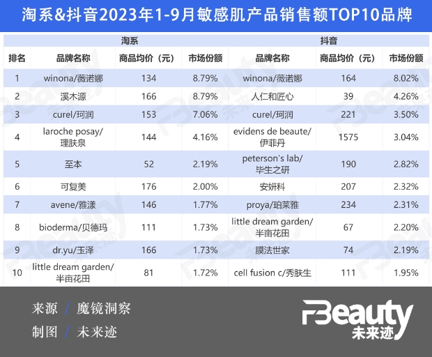 值得注意的,这些品牌的突围靠的并不是充当外资品牌的“平替”,而是在“敏感肌护理”层面,从产品、价格、品牌声量等多个方面已经能够与国际品牌抗衡甚至超越国际品牌。