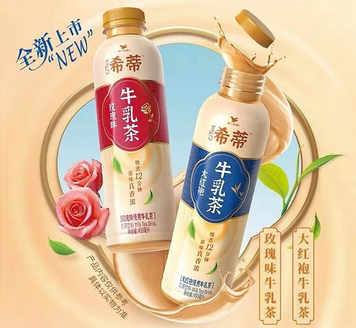 但先天积累的这些优势,并不能让它一直稳操胜券。统一开始寻求突破,推出了两款“希蒂”慢煮牛乳茶,以“慢煮12分钟,滋味真香浓”为口号,分大红袍牛乳茶和玫瑰味牛乳茶两种口味。同时完善了产品矩阵,除了阿萨姆原味奶茶外,还有煎茶奶绿、白桃观音、青提茉莉和岩盐芝士共五款口味,有望在冲击60亿目标的道路上再添一把柴。