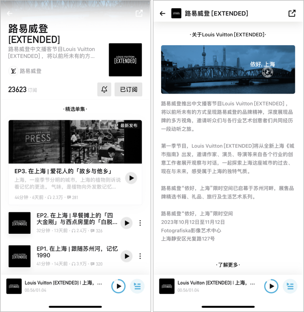 照理说,无论是中文播客的创作者规模、内容丰富度还是受众群体上,播客目前都还只是一个小市场。我们也无从得知,LV如何衡量播客带来的传播效果。