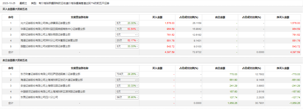 10月25日,韩建河山今日涨停,全天换手率达2.01%,振幅达0%。龙虎榜数据显示,营业部席位合计净买入2539.33万元。其中,光大证券佛山绿景路证券营业部、华泰证券深圳益田路荣超商务中心证券营业部分别买入1576.00万元、964.59万元;东方财富证券拉萨团结路第二证券营业部、海通证券上海浦东新区世纪大道证券营业部分别卖出770.03万元、551.6万元。