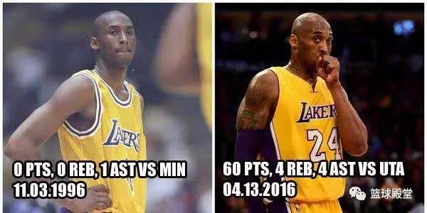 对于科比,大家很容易忘记他的处子秀的表现,因为他在第一场比赛中只得到了1板。然而,在他的最后一场比赛对阵犹他爵士,科比展现出十八般武艺,那个巅峰的科比又回来了。最终科比得到60分,率领湖人完成15分大逆转,用一场堪称经典的比赛结束了自己的职业生涯。