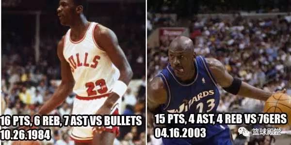 老流氓乔丹的处子秀同样亮眼,第一场比赛中他得到16分、6个篮板和7次助攻的公牛109 - 93战胜华盛顿子弹。他的最后一场比赛在2003年4月16日,乔丹得到了15分4篮板4助攻,当乔丹离开赛场,76人主场为他播放歌曲“想说再见不容易”来致敬乔丹。