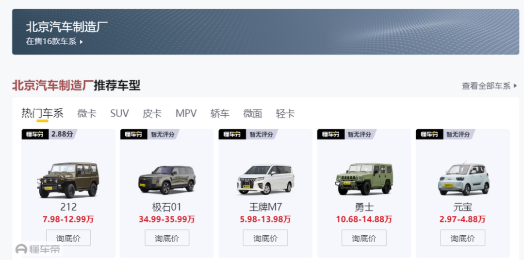 极石虽然通过山东魏桥取得了北京汽车制造厂的制造优势,但后者实际上没有高端车辆的生产经验——懂车帝信息显示,北京汽车制造厂所产车辆中,唯有212这款号称“硬派越野活化石”的经典国产车型,具备让人信服的生产力。但这并非一款高端车型,理想当初曾因力帆的生产资质饱受诟病,蔚来、小鹏也曾因为交付难题而挣扎,极石35万的定价,显然难逃关于品控与生产实力的拷问。