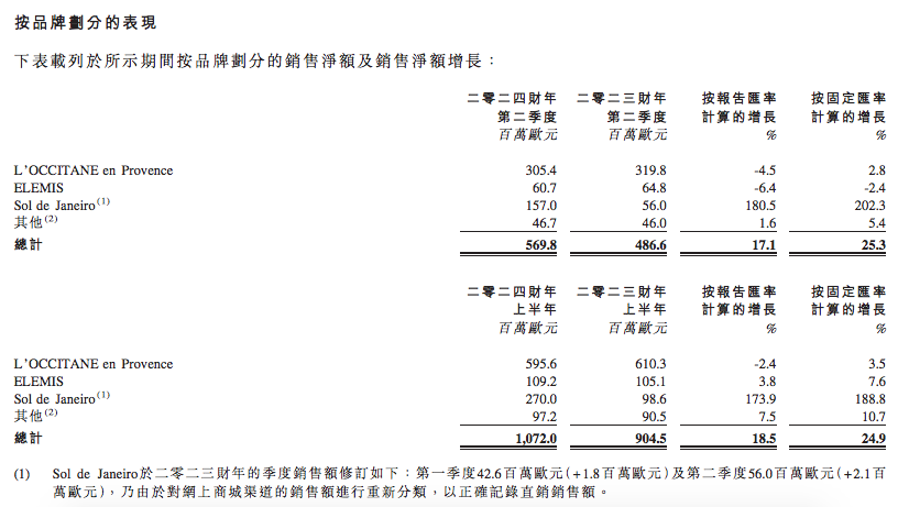 当地时间10月24日,法国美容集团L’Occitane International SA(0973.HK)欧舒丹公布了2024财年第二季度(2023年7-9月)和上半年(2023年4月到9月)的财报。