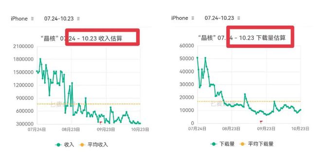 图/《晶核》近3月收入趋势及下载量趋势 来源/七麦数据 镜观台截图