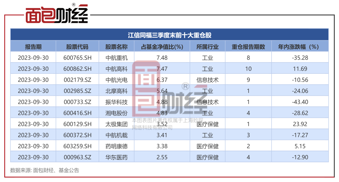 2023年以来,该基金7只重仓股年内股价出现下跌,其中基金第一大重仓股中航重机今年以来股票下跌35.28%。振华科技、湘电股份等重仓股跌幅同样居前,分别下跌43.4%、28.62%。