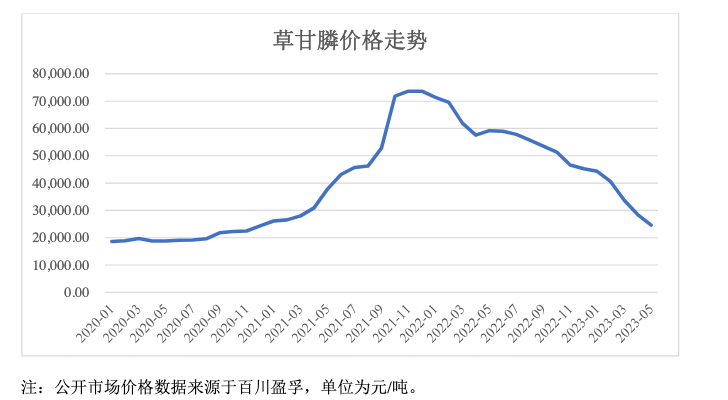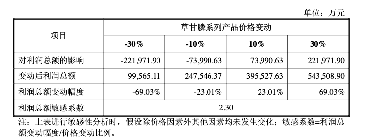 福华化学在招股书中表示,以2022年业绩为基础,倘若草甘膦价格下跌10%,公司利润总额将下滑23%,倘若草甘膦价格下跌30%,利润总额将减少69%。