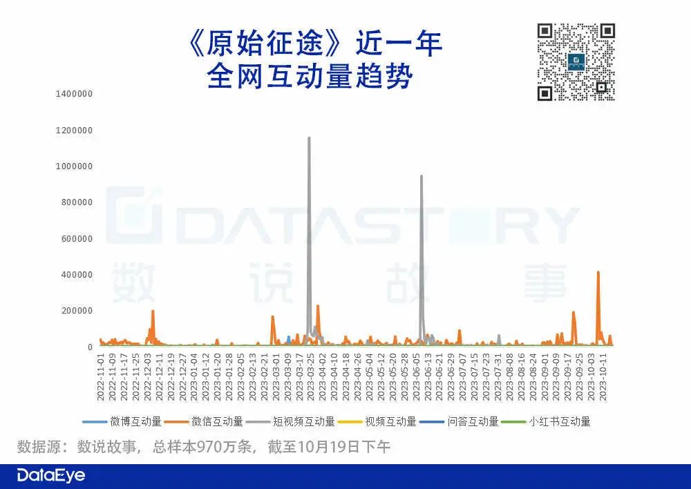 受众互动量:(赞、转、评、投币等)方面达到了970万,其中公测当天是互动量最高的,后续则出现3次小高峰。