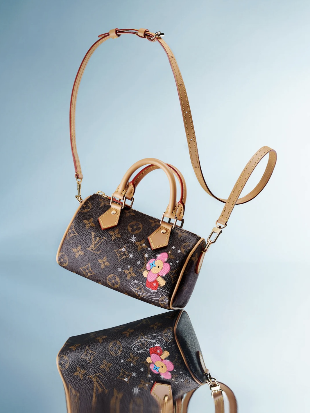 Louis Vuitton Vivienne Holidays系列包含缀有复古天然牛皮饰边的经典 NANO SPEEDY 手袋手袋、POCHETTE FÉLICIE 链条包、MINI POCHETTE ACCESSOIRES 手拿包、护照套以及Xmas Vivienne丝巾束发带以及Vivienne项链等。