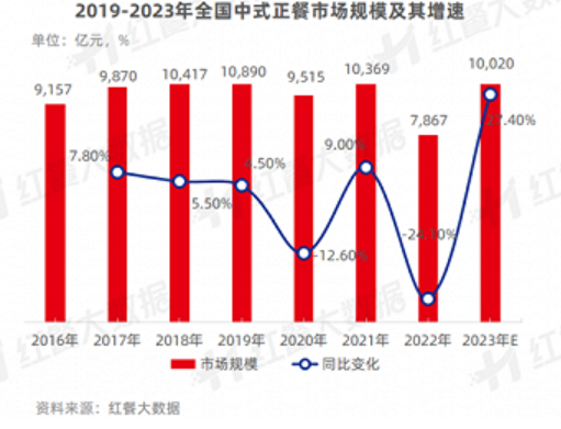 原因是快餐的市场规模更大。红餐大数据显示,2022年中国快餐行业市场规模为7867亿元,预计2023年中国快餐行业市场规模将达10020亿元。此外,相较于中高端的西贝莜面村,中国堡这样的小店模式,更容易扩张。一旦放开加盟,快餐可以以极快的速度拓店。