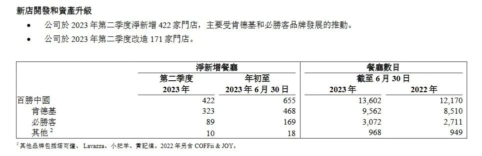 这也体现在数据上,连锁品牌门店规模持续扩张。以百胜中国为例,财报数据显示,今年上半年,百胜中国净新增655家门店;其中肯德基新增468家门店,必胜客新增169家门店。