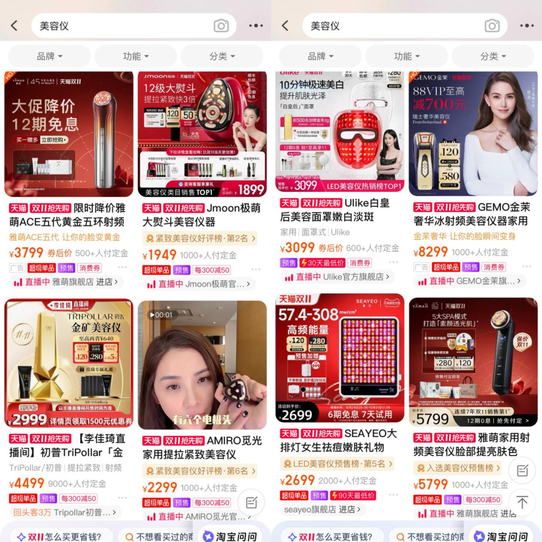 一款券后售价4499元的美容仪,仅双11定金付款就有近1万人。