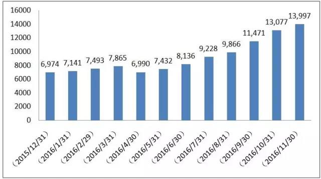 委外资金的持续流入,推动债券基金总规模节节攀升,几乎每月都刷新历史最高纪录。数据显示,11月份债券基金总规模较10月份增长919.81亿元,增幅达7.03%。而11月底债券基金总规模达到1.3997万亿元,创出历史新高,占全部基金总规模比达到16.01%。预计到年底,委外资金的流入趋势仍难改变。