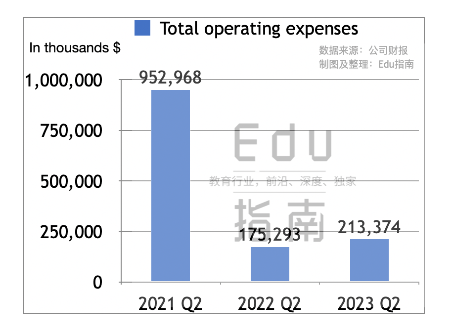 根据季报,好未来公司2024财年二季度总经营费用为2.1亿美元,同比上一财年同期的1.8亿美元,本季度该费用减少22%。近两个财年Q2该经营费用相较2022财年同期的9.5亿美元,分别表现为显著下降。