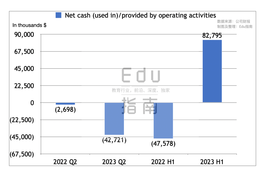 根据季报,好未来公司本季度经营现金净流出4272万美元,上一财年同期该项现金净流出额为270万美元。2024财年上半年(截至2023年8月)来看,该公司经营活动现金净流入额为8280万美元,相较上一财年同期净流出的4758万美元,本期该项现金由流出转向流入。