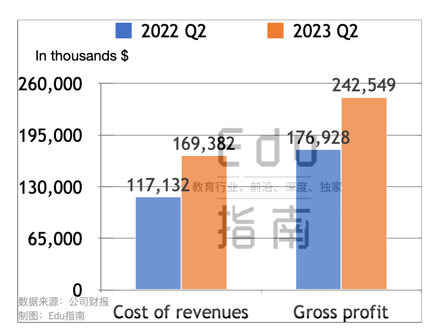 根据季报,好未来公司2024财年二季度收入成本为1.7亿美元,同比上一财年Q2的1.2亿美元,该成本增幅为45%。该公司Q2毛利润额为2.4亿美元,同比上一财年同期的1.8亿美元,毛利润增幅为37%。