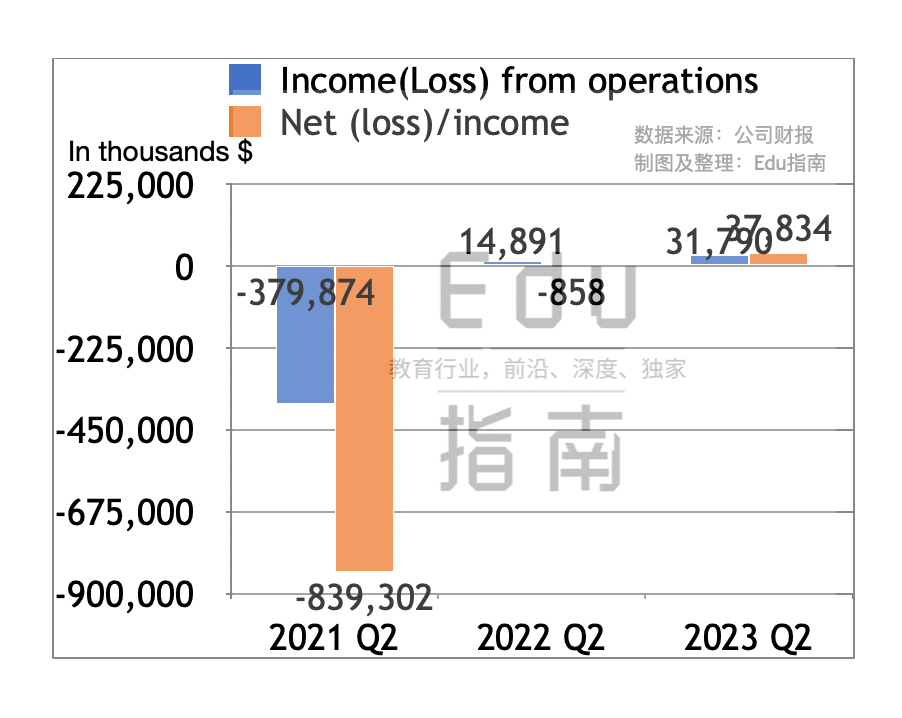 今年7月该公司发布其2024财年Q1(截至2023年5月)业绩报告,根据该季报,好未来公司营收2.8亿美元,增长23%,该公司2023财年Q1营收同比2022财年同期(截至2021年5月的三个月)营收的13.8亿美元,表现为下降84%。该财季营收变化,同样表现为由下降转为增长。该季度好未来经营现金流转正,净流入1.3亿美元。其Q1财季收入成本为1.4亿美元,同比上一财年Q1的0.9亿美元,该成本增幅为58%。
