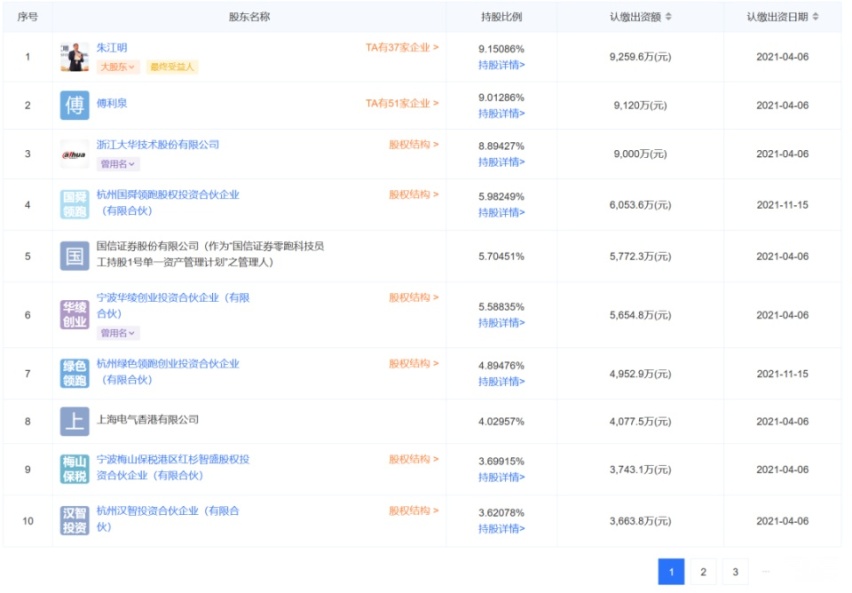 ▲企查查显示的零跑汽车前十大股东持股比例与其招股书数据存在一定偏差