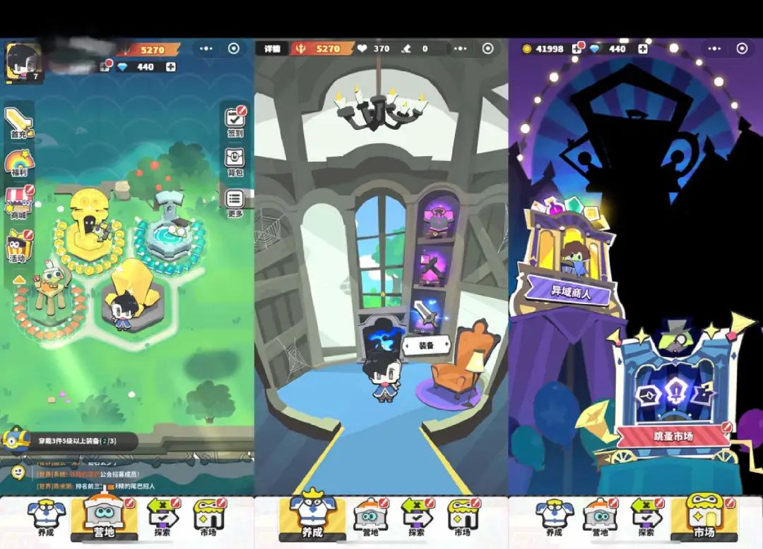 从画风特色来看:在美术风格上游戏并没有选择写实风格,反而是选择了更明快的卡通风。和广州厂商常见的蹭IP、玩梗(如蹭死神、火影、海贼、初音、“篮球唱跳个人练习生”梗)不同,是原创立绘(风格有一丝《剑与远征》的影子)。战斗画面特效多,但总体来说还是传统的“卡牌移动加打击特效”,注重体现游戏的亲和力和趣味性,对于泛用户有更好的接受度。