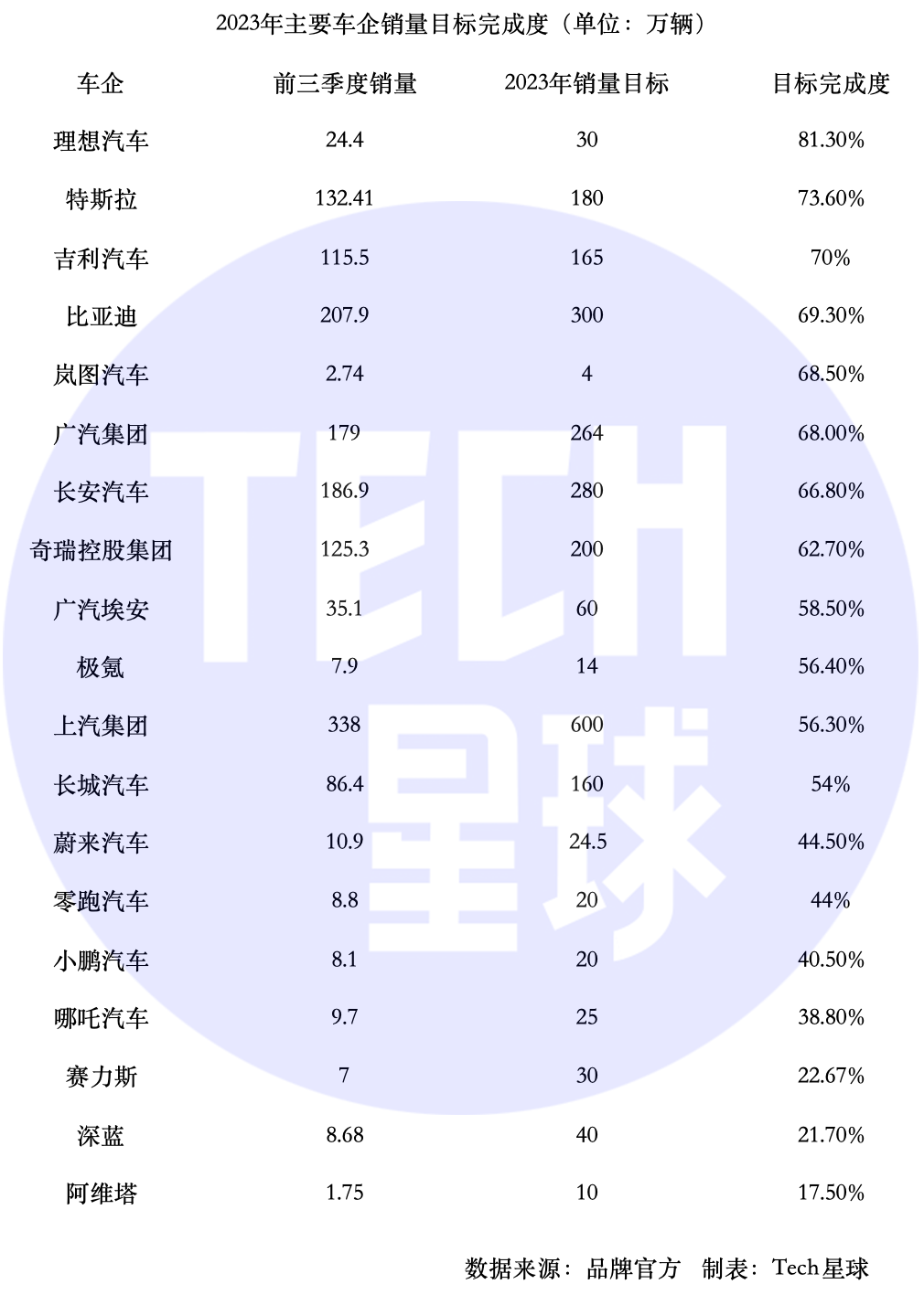 图注:2023年主要车企年度销量目标完成率。