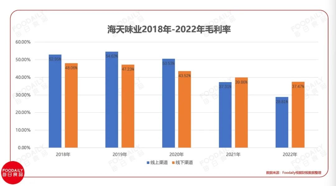 2022年,海天线上渠道营收毛利率仅为28.8%。同一时间,千禾的毛利率为42.09%。