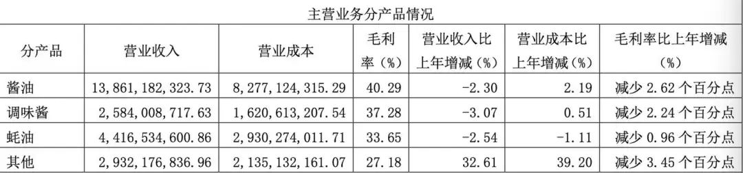在财报中,海天的营收主要来自于四大产品线,分别是酱油、调味品、蚝油和其他。其中,超过一半的营收都来自于酱油。