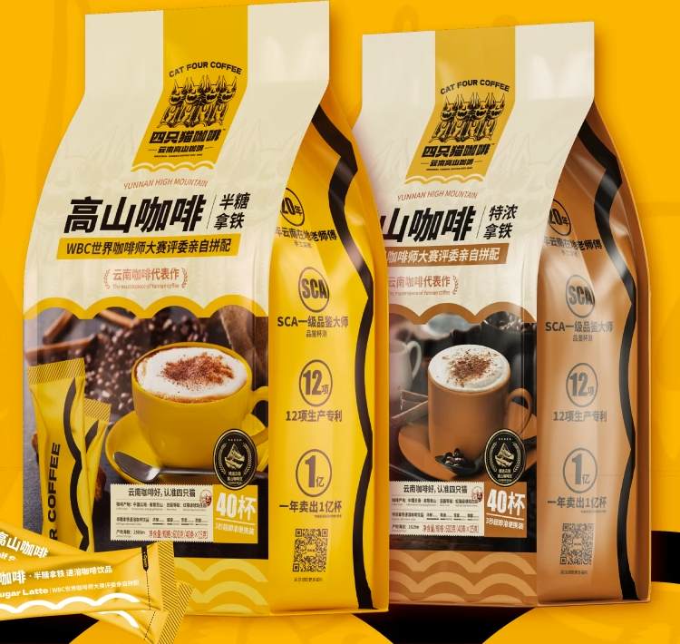 例如来自云南的速溶咖啡品牌四只猫咖啡,靠着将品牌与“云南文化”绑定,为品牌赢得了非常高的知名度,也带动了品牌的销量。