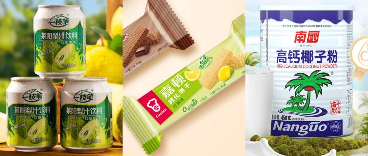 除了山花,中国香港的嘉顿饼干、海南的南国食品、山东的一枝笔梨汁......来自各个地方的食品品牌也都纷纷排着队,拿着一夜走红的号码牌。
