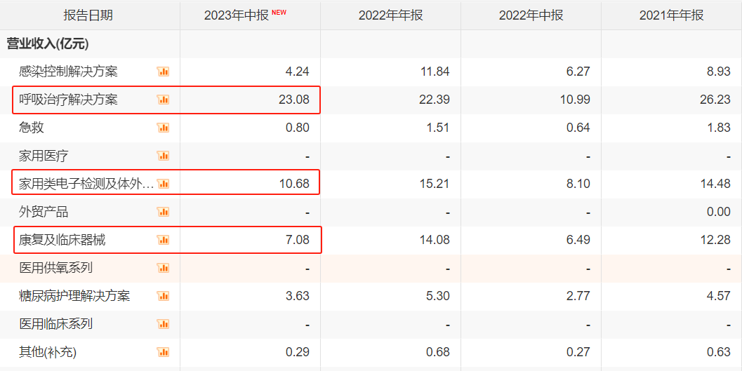 仅从2023年上半年而言,呼吸治疗业务贡献了该公司近35%的营收,达23亿元,同比增加110%,去年同期该业务营收约11亿元。