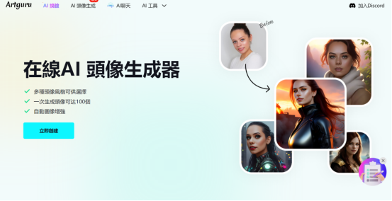 在个性化方面,Artguru.ai的亮眼之处,就在于其不仅在AI绘画方面,提供了多种备选风格,如动漫、油画、卡通、赛博朋克等,而且用户还能在Artguru.ai上用一种类似妙鸭相机式的AI头像生成器,创建风格鲜明的艺术头像。