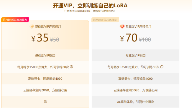 目前,无界AI与海艺AI一样,采取的是VIP与免费并行的商业模式,开通会员后,用户不仅可以获得更多的专业版使用时长,同时还能解锁更多专属模型、参数和训练空间等等。