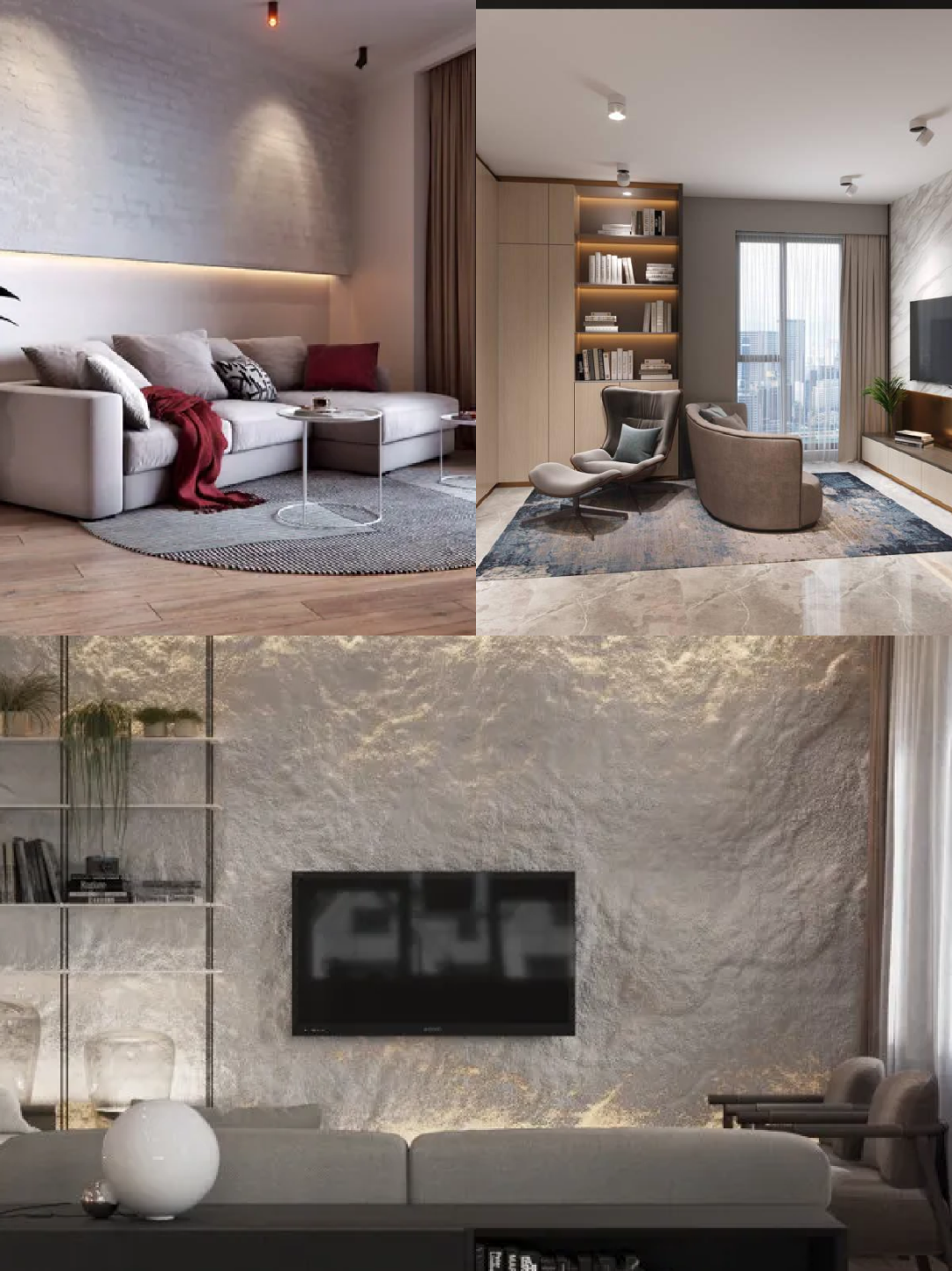 在客厅的设计上,顾客们更喜欢「见光不见灯」的无主灯设计,打造能投影的乳胶漆电视背景墙,不要茶几。