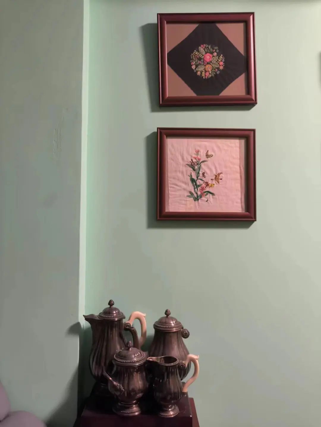 2018至2019年期间,瓜仔一家频繁地在家里大动工,刷墙、组装家具、换装饰品等等,瓜仔的绣品们也被一个个装裱起来,和苏绣牡丹、湘绣荷花以及梵高的仿品画一起挂在客厅的墙上。疫情期间,大动工停止,但随着瓜仔一个个作品的完成,墙上的绣品还在继续更换。现在,瓜仔家还没有决定是否要继续给家里的颜色上新,每月装饰家居的固定支出是在微信小程序上订花,每月两百元左右,月送四五次时令、随机的鲜花。她透露,大动工和家居装饰的总费用平摊到一起,平均每年几千元。