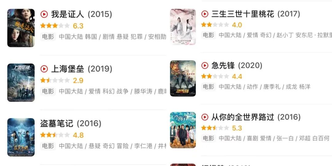 当时流量生被塞进了各种IP大项目里。李易峰演了《心理罪》、杨洋演了《三生三世十里桃花》、吴亦凡演了《致青春》《西游伏妖篇》、鹿晗演了《盗墓笔记》《上海堡垒》等。