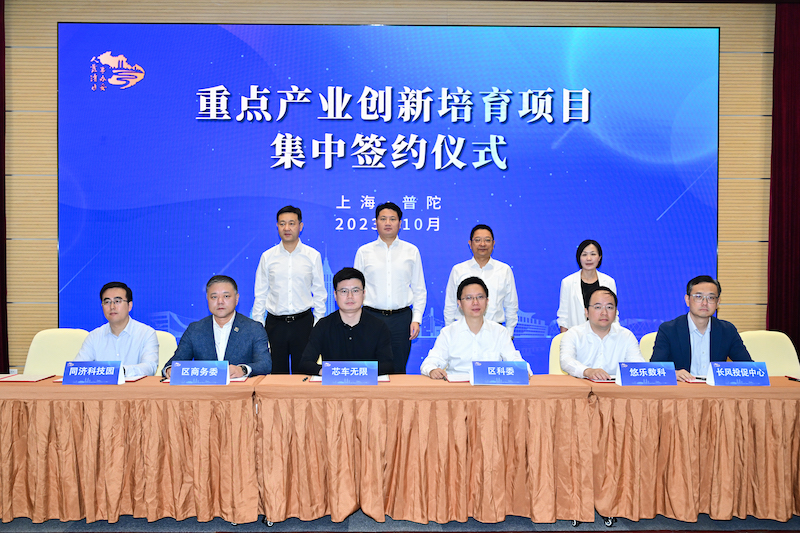 2023年10月27日,2023年普陀区第五次重点项目集中签约仪式举行。会上,6家重点产业创新培育项目和27个招商引资重点项目集中签约落户普陀,涵盖了高端制造、城市更新、科技金融等多个领域。