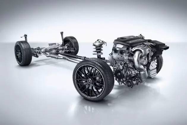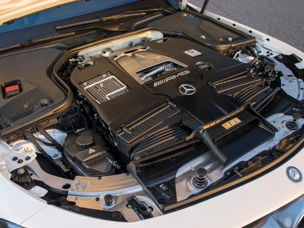 来到今年底,在洛杉矶车展上,奔驰带来了全新的E63 AMG。体积上更为“缩水”的4.0T涡轮增压发动机不但数据表现比前辈更为优秀(扭矩高达750N·m),更让车主们轻松面对各国丧心病狂的排量附加税。这台双涡轮V8把涡轮增压装置塞进了V型夹角的空间中,整个结构从V字变成了A字。使用了重心更低的干式油底壳,原来从侧面看上去呈Y型的发动机整体,现在成了名副其实的V型。