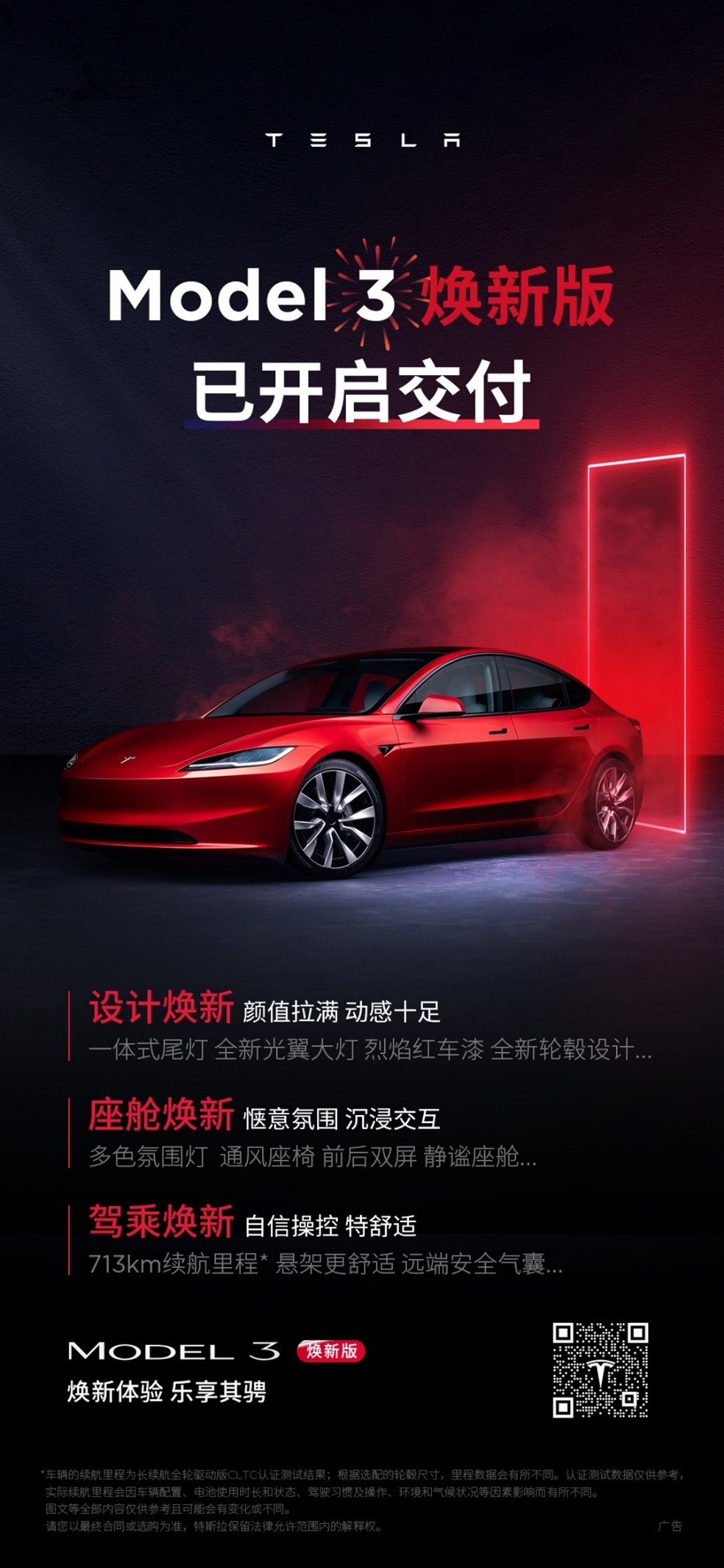 据悉,经过第三季度的“焕新季”后,特斯拉的“交付季”已经在第四季度全面开启。在阜阳车展首发秀的舞台,特斯拉讲师也分享了Model3焕新版在美学设计、驾驶体验、座舱交互的全方位焕新。“好看”“好开”“好坐”——首批焕新3车主提车后直呼盲定“真香”