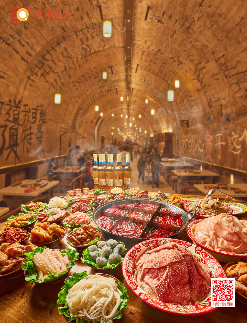 重庆火锅作为中国餐饮文化的瑰宝,一直以来备受推崇。“地下之城”里纵横交错的18个防空洞群,其中最大的一条就被打造成超级火锅店,作为“地下之城”文旅项目的开篇之作。