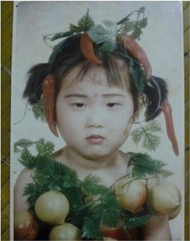 童年时爸妈给整的造型,也总是充满意趣。不得不承认,绿色的尿盆让整个造型都有了灵魂。▼