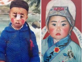 两坨高原红,一颗美人痣,那就是童年时尚的象征。尤其是眉心这个点儿,爹妈不给点,你肯定还不乐意。▼