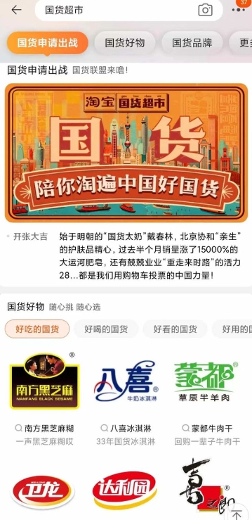 一个月前,淘宝上线“国货超市”,其中包括日用护肤、美妆、食品、服饰等各个品类的国货。