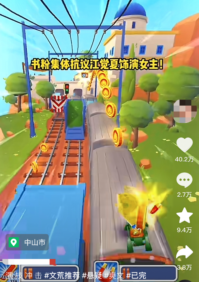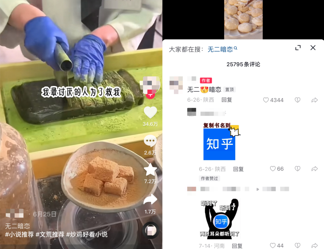 你有没有在抖音等短视频平台上看到过这样的短视频?画面中是地铁跑酷的视频,配音是AI人声正在朗读一篇穿越文,念到故事的高潮处,视频戛然而止,打开评论区可以看到小说名称,作者还用各种同音字引导到“芝湖(知乎)”“悠C(UC)”搜索。
