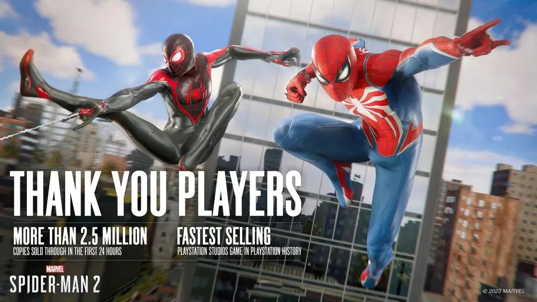 去年5月,Insomniac Games公布系列销量超过3300万份。2代发售24小时内,销量即超250万份,刷新了索尼旗下第一方作品的销售速度纪录。结合其出色口碑,《漫威蜘蛛侠2》的商业成绩也还有很大想象空间。
