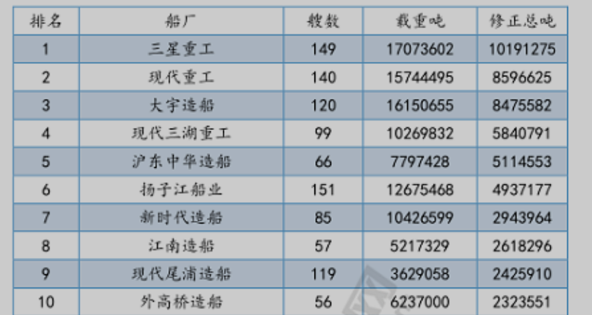 在国内的船厂中,这两家则仅次于沪东中华船厂,排在第2和第3的位置。