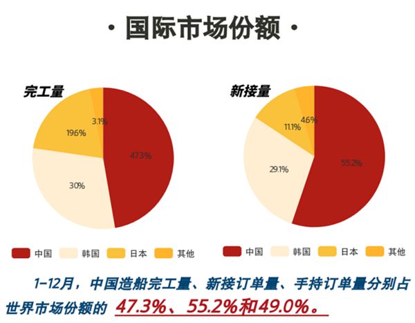 2022年中国造船完工量、新接订单量和手持订单量仍是全球第一