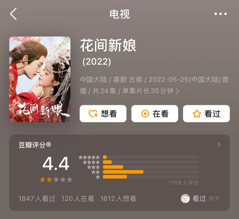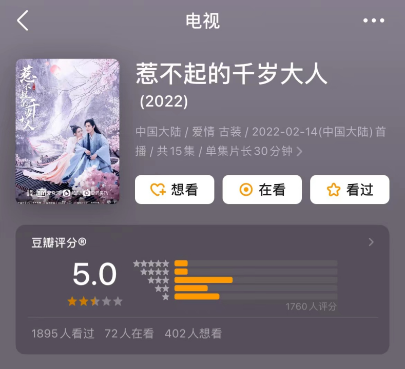何况甜宠剧发展乏力的状况也不容忽视。17年《双世宠妃》的成功让市场看到了甜宠剧的潜力,19年影视剧市场迎来了甜宠剧类型的大爆发,足足上线了106部甜宠剧,20年也有《传闻中的陈芊芊》等甜宠爆款剧出现,近几年市场上的甜宠剧数量依旧不少,但鲜有爆款、出圈的作品,2022年的一干甜宠剧如《花间新娘》《千金难逃》《惹不起的千岁大人》,评分与口碑都不甚理想。