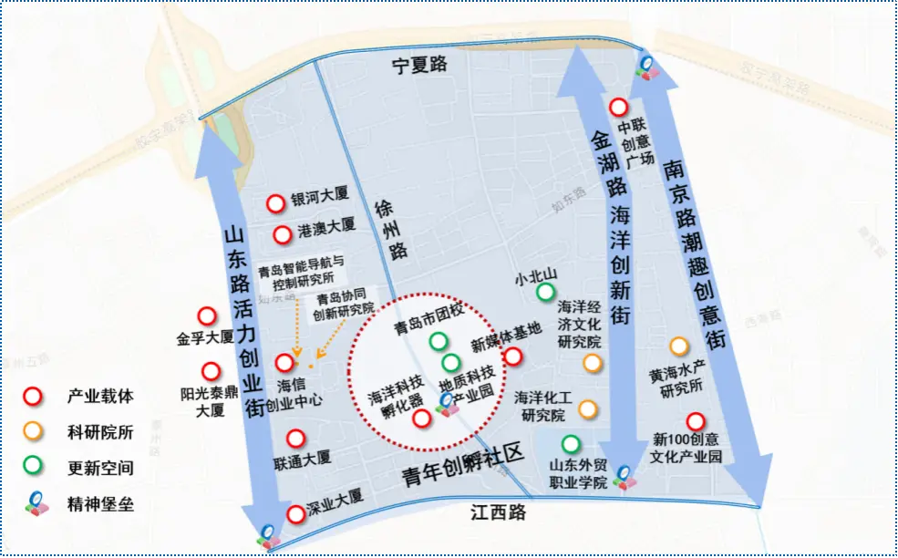 市南区探索无边界“全域创新城”建设,打造延安三路科创走廊、金湖路科创智谷示范样板,在金湖路科创智谷启动仪式上发布《市南区金湖路科创智谷建设方案》。聚力发展海洋科技、数字创意两大核心产业,实施重点载体提质、产业发展筑强、创新主体倍增、要素资源汇聚、城市功能优化5项突破行动,升级体制、政策、服务、宣传、活动、资金、纾困7项保障措施,构建协同创新生态、打造科产城人融合样板。