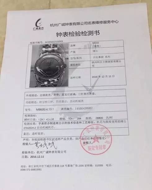 细心的谌先生发现,此报告单上的表壳编号与他所购买的那块手表编号并不一样,而且,这张检测单不是由美度官方开具,而是来自一个第三方机构。换言之,这是一张假的检测单!谌先生当即对此提出质疑,来分期方面解释称,可能是没有核实清楚。