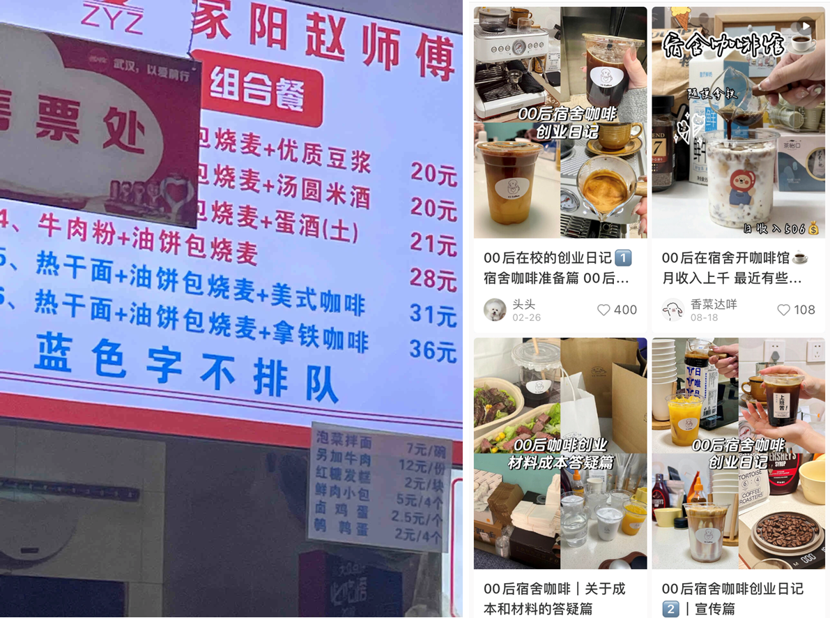 左图为河北的一家早餐店,右图为00后开的宿舍咖啡店,图源小红书
