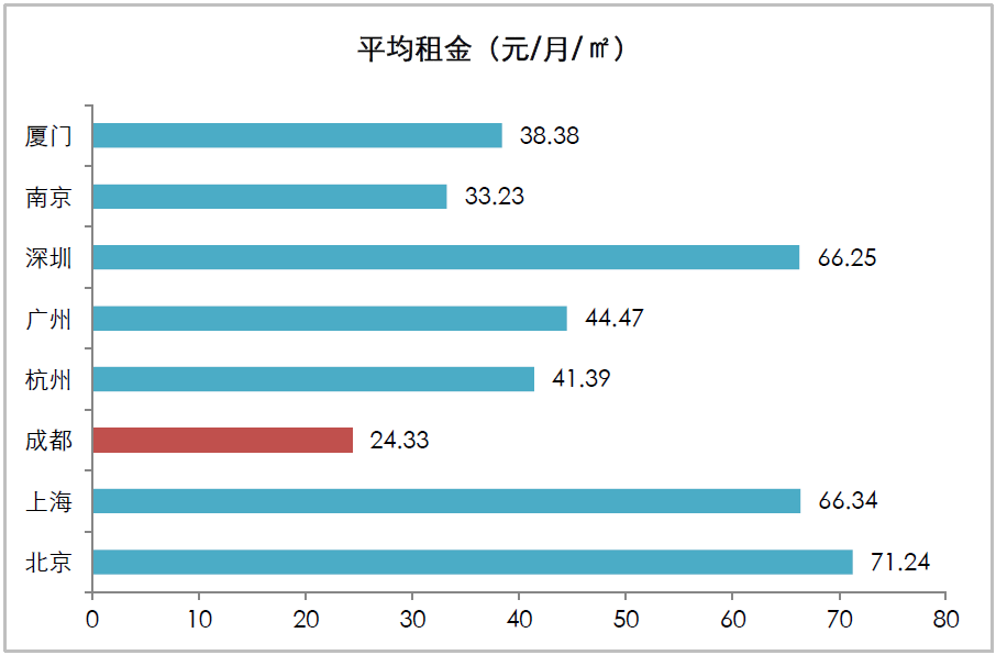 根据房价行情平台的数据,可以粗略计算,租一间50平方米的套一,在北京平均要3562元/月,在深圳平均要3313元/月,而在成都平均只需要1217元/月(此处取值是城市整体平均水平,不同区域地段差异性较大)。